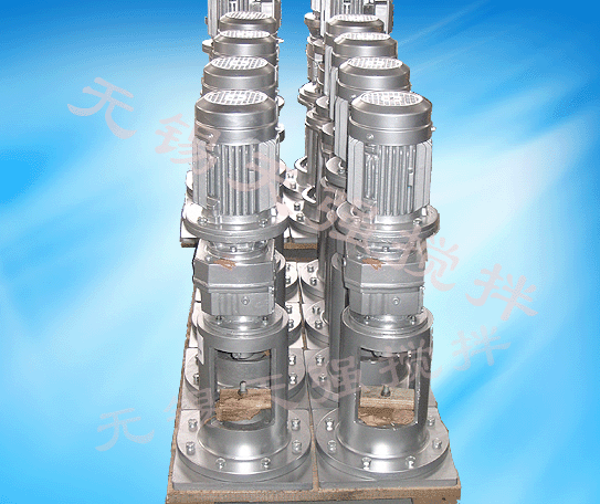 大型儲罐一般是為了防止抽料泵口物料分層比較厲害和固體物堆積影響泵的運(yùn)行而通過在泵口附近進(jìn)行攪拌,一般情況下使用性價(jià)比計(jì)較高的側(cè)攪拌裝置,采用的齒輪或者皮帶傳動(dòng),配側(cè)攪拌專用機(jī)械密封,使用的槳葉是軸流型的推進(jìn)式TXL或者寬葉旋槳式KHX.安裝使用維護(hù)非常方便。